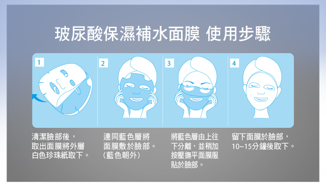 3.將藍色層由上往下分離,並稍按壓撫平服貼於臉部。
