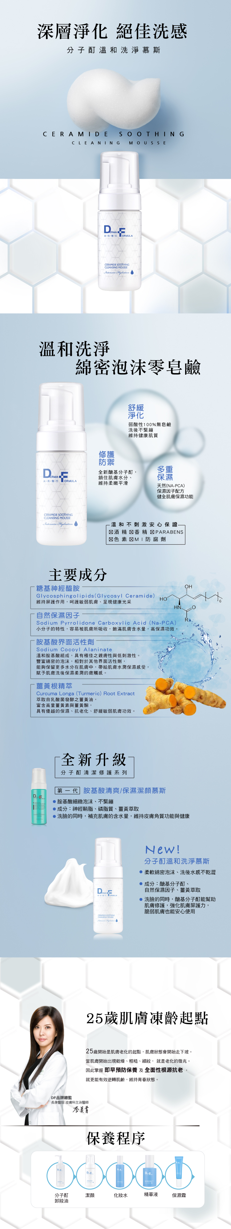 將臉部潤濕後,按壓出適量慕斯約1~2 次於手中,於臉部輕輕搓洗,再以清水沖洗乾淨即可。